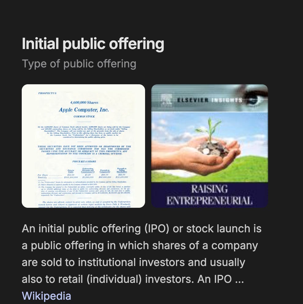 gotta understand there is an IPO to your solution