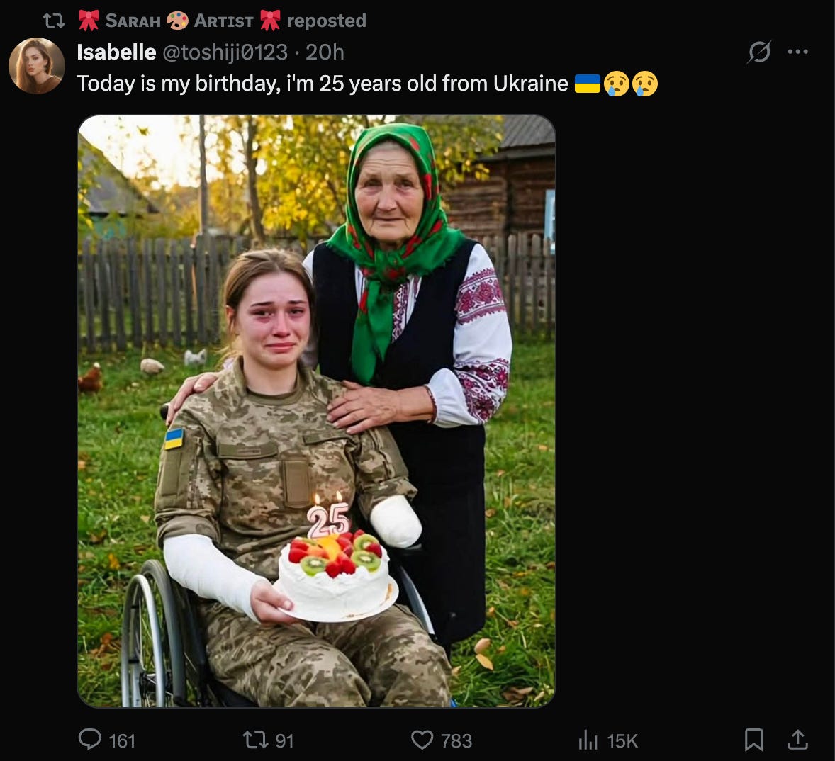 above is some of the slop being reposted i dont know if they are doing it for engagement farming or whether to get money from boomers - i think both - use AI as an artist page to get commissions then you sell to boomer as milf then generate that shit in chatgpt slop. or simply get some extra cash through the ad bucks.