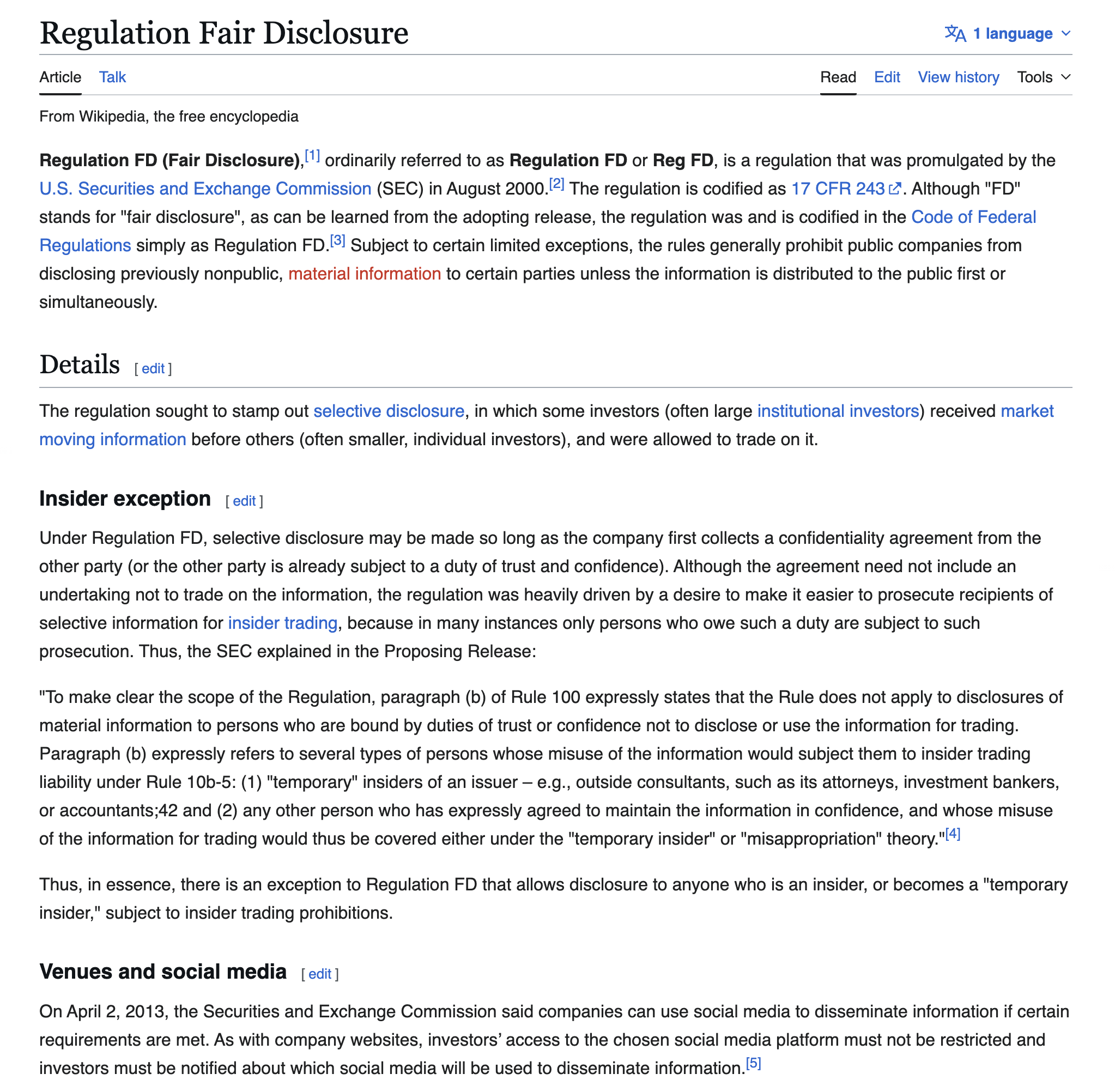 so essentially before 2000 it wasnt all that punishable by law to disclose things to other investors or whatever in whatever channels there were.